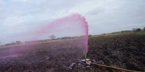 Single phase systems using a 1.5 kW 240v single phase pump will give a nominal output of 4 m3 per hour, over an area of 1017 m2, giving an application of 3.3 mm per hour.